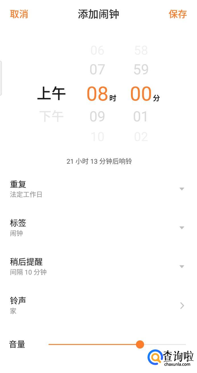 点击 保存 即可完成闹钟设置