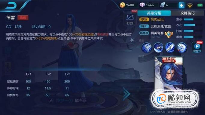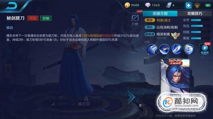 名刀,在受到致命伤害时,无敌1s且增加自身20%的移速。这个英雄极大的提高了橘右京的生存,由于橘右京的高额爆发和回复,使得其可以打出更高的输出来赢得团战。