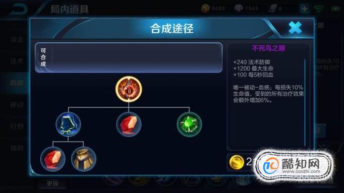 不死鸟之眼,在提供法术抗性和生命值的基础上,还提高了自身的吸血效果,这个效果与橘右京的大招相当契合。在对面ap伤害较高的时候,可以考虑替换复活甲。