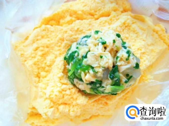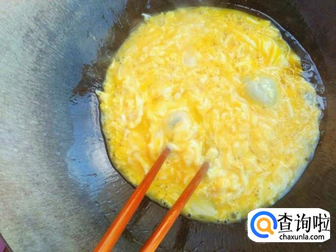 锅里放油烧热然后小火,将鸡蛋打进去,用筷子迅速的搅动,做成鸡蛋碎放凉待用。