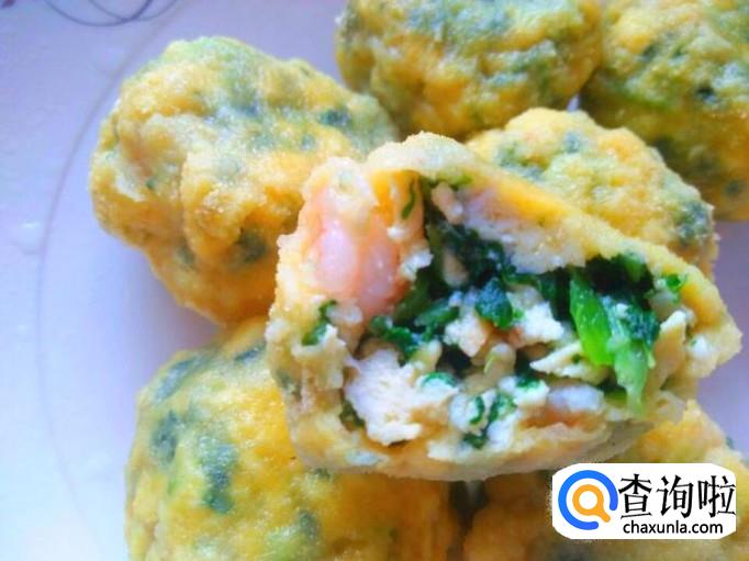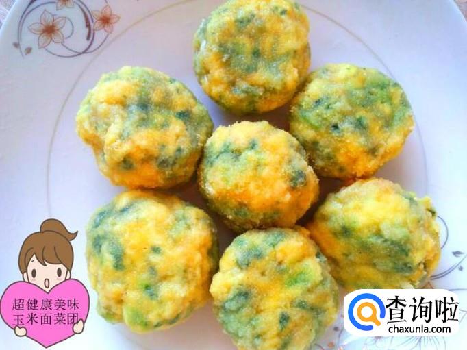 看,菜团子做好啦,鲜鲜嫩嫩特别可口,重要的是一点也不油腻,味道还非常的好,且里面有青菜、鸡蛋还有虾仁,外边包裹着玉米面,就算吃一盘子,都不会发胖的哦。