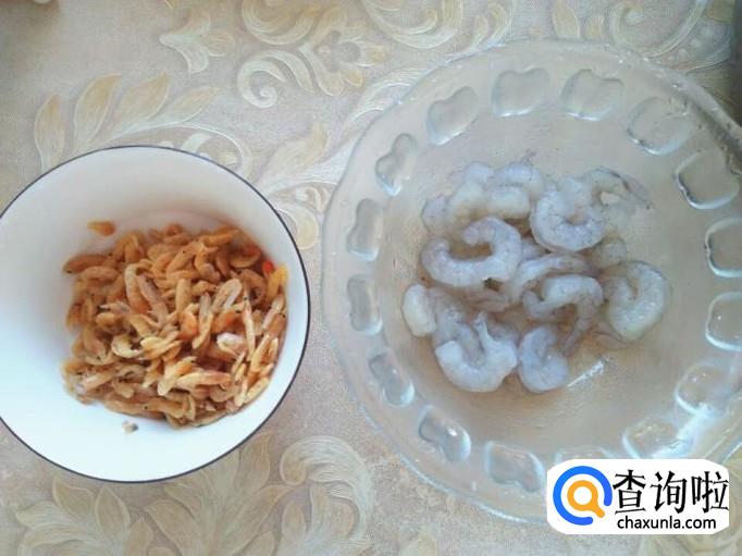 小白菜、虾仁(或者虾皮)、鸡蛋、玉米面各适量