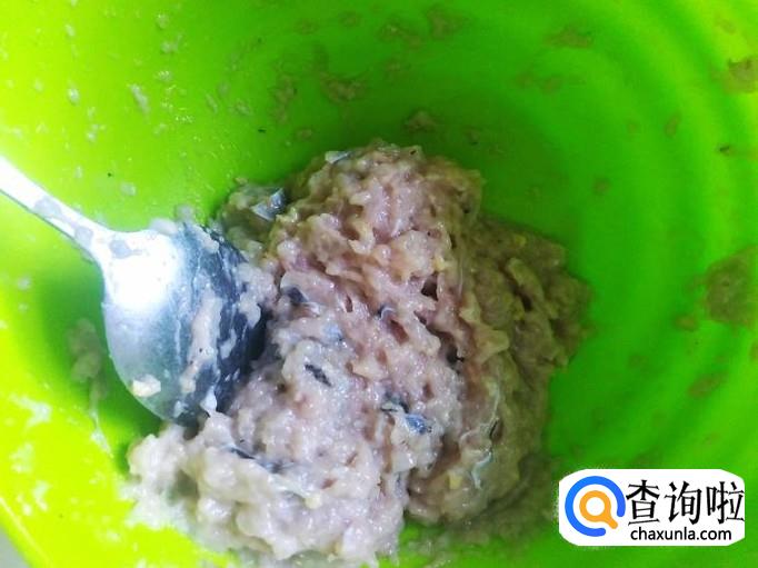 1勺料酒腌制一下,然后用勺子搅拌10分钟左右,搅拌到鱼肉很粘为止。