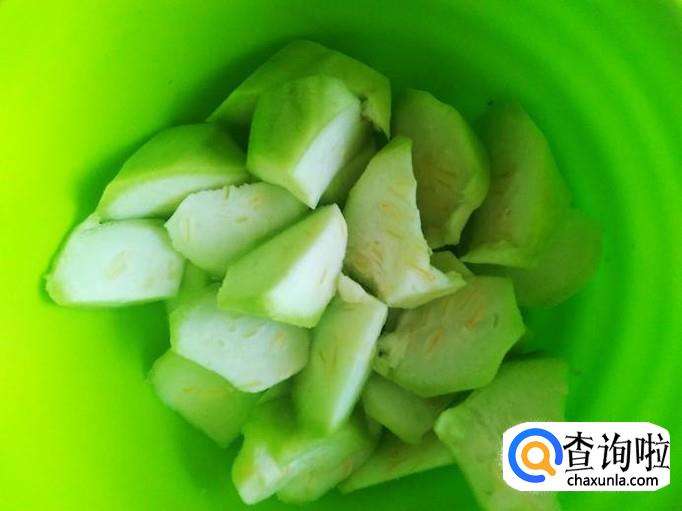 丝瓜切成棱角块。