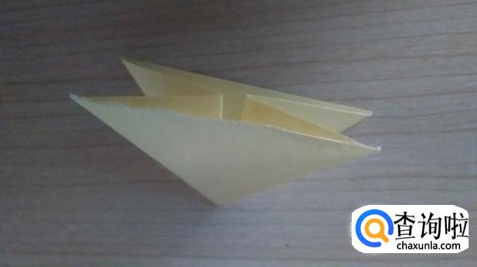接着将一个面的三角形的两个角往上折,对齐并压实,如下图所示。