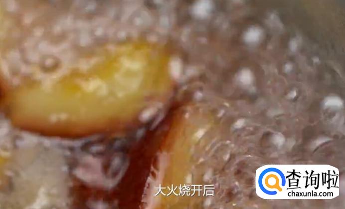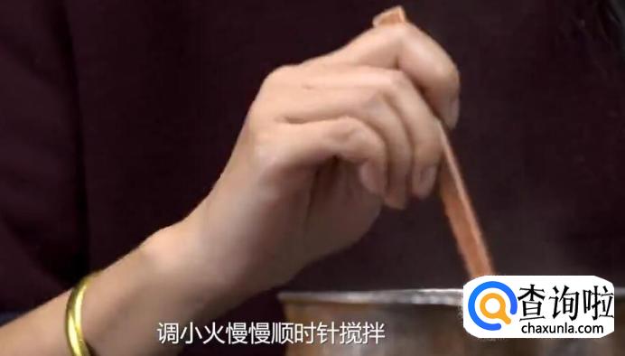 大火烧开后,调小火慢慢顺时针搅拌,需要不停搅拌防止粘锅。