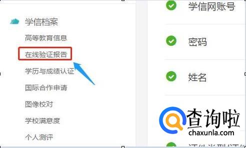 注册以后,使用我们的手机号、身份证号或者邮箱登录,登录进入以后会在首页的最左侧看到一项"在线验证报告",如图所示