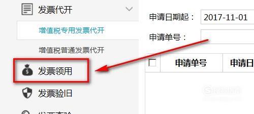 然后点击页面左边的【发票领用】。