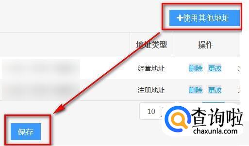 页面会直接弹出公司的经营和注册地址,勾选其中一个地址,勾选后点击【保存】,如果想用其他收件地址,可以点击页面右边的【使用其他地址】,修改好后,点击【保存】。