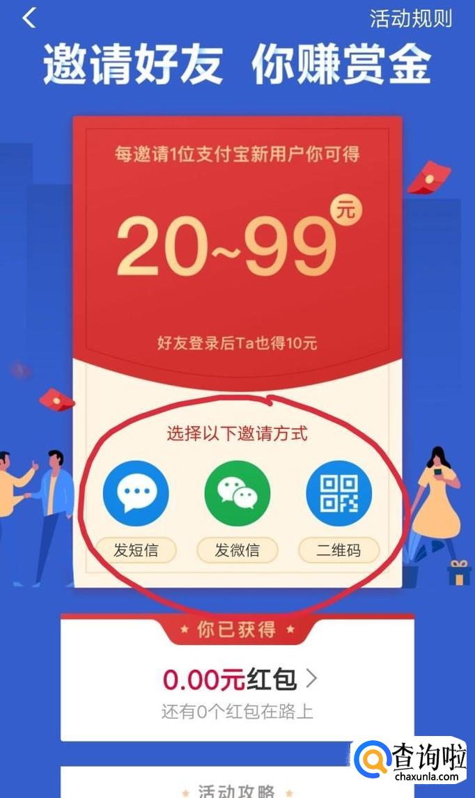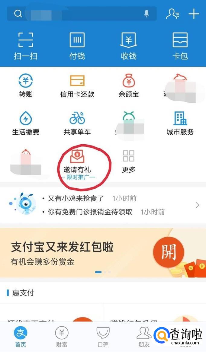 支付宝中怎样邀请新人好友使用支付宝赚红包?