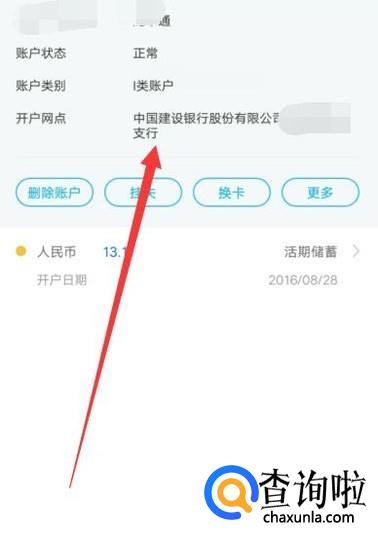 进入之后,即可看到银行卡的开户行,如图所示。