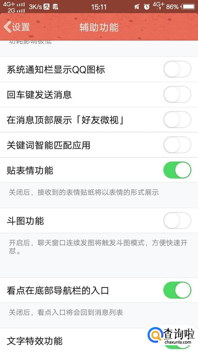 最后会跳出来很多的选项,我们手动装到斗图功能,并且将它点击关闭即可。