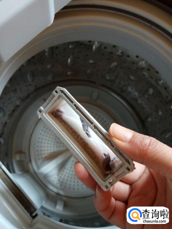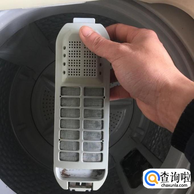 看小编就把这个洗衣机的过滤网拆下来了。清洗方法和整体式过滤网是一样的。