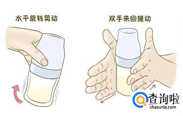 倒入奶粉后,盖上瓶盖,不要摇动奶瓶,用双手搓奶瓶,直到奶粉完全溶解,用力摇动奶瓶,奶粉会起泡泡。奶粉完全溶解后就可以拿给宝宝喝啦!