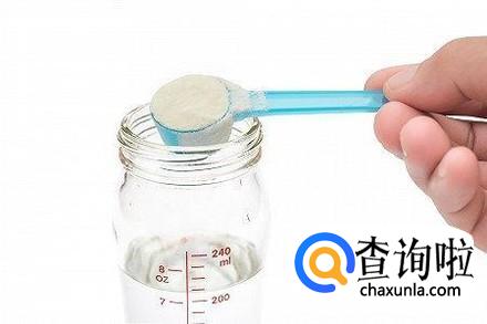 奶瓶中倒入水后再倒奶粉,奶粉要平勺,不能鼓起,也不能凹下去,严格按照奶粉罐上水和奶粉的比例来添加奶粉。