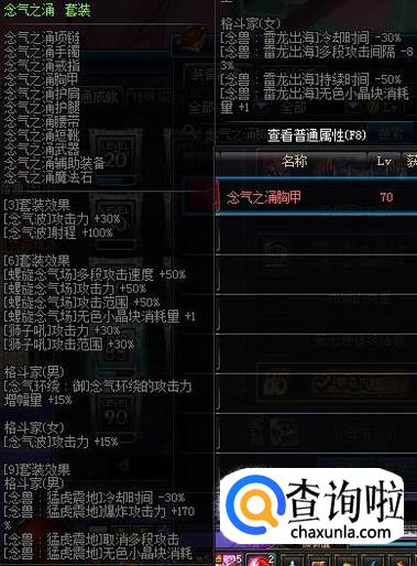最后就是念气之涌套装了,这套装备主要强化了lv45的技能,170%的伤害加成看着就已经是相当强大了。