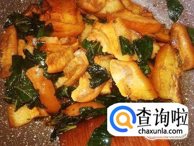 打开盖子翻炒一下,熄火。香喷喷的假蒌炒猪头皮就做好了。