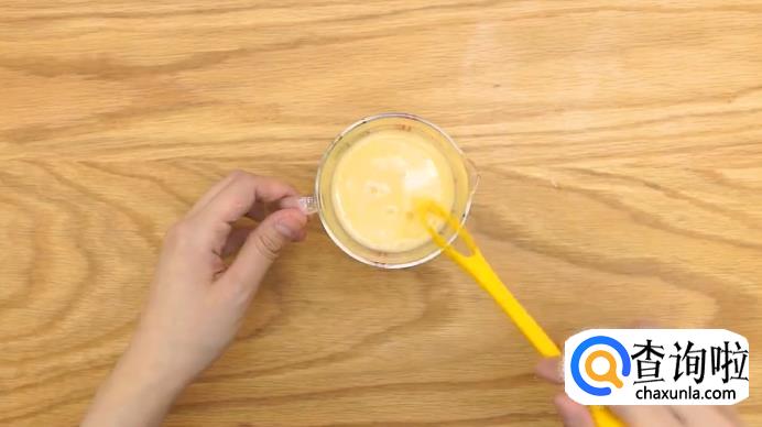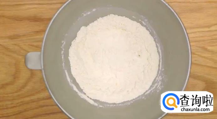 接着来做面包的部分。将所有的分类混合在一起并搅拌均匀,再把酵母放入温水中搅拌均匀,加入蛋液一起混合拌匀。
