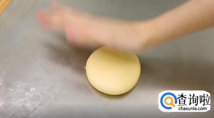 按压完成后,收口朝下放在烤盘纸上,用保鲜膜盖起来,温度设置在30度,发酵50分钟。