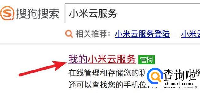 打开搜狗搜索,输入‘小米云服务’,然后点击打开官方网站。