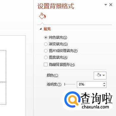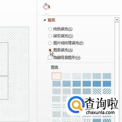 点击“设置背景格式”按钮;弹出“设置背景格式”小窗口。然后,在“填充”这里选择其中一种填充方式。比如,选择:图案填充