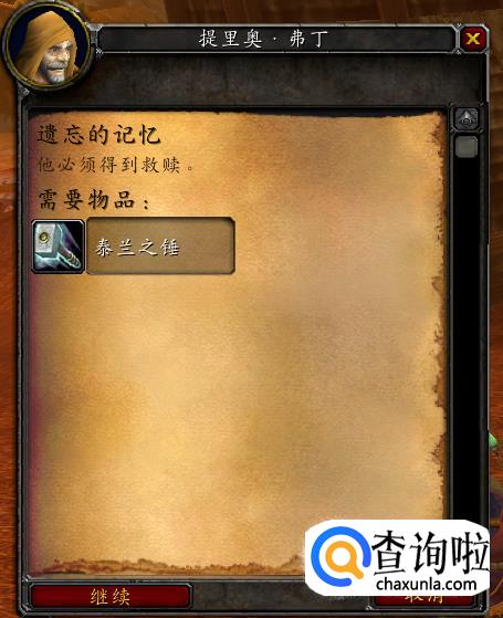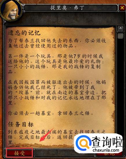 怀旧服任务,遗忘的记忆#泰兰之锤坐标28,86