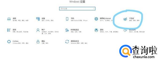 在“设置”菜单找到“个性化”的选项,点击进入