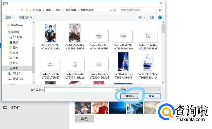 然后在出现的文件夹里选择好自己想要设置的高清壁纸点击“选择图片”