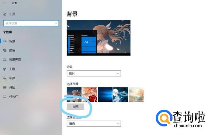 在个性化界面点击“浏览”选项