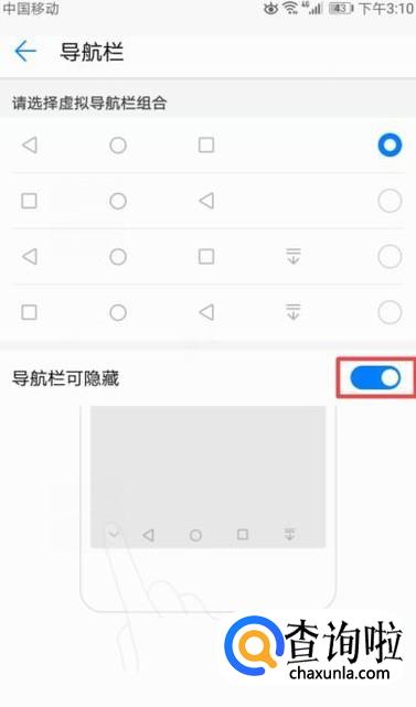 然后我们将导航栏可隐藏的开关向右滑动打开,这样就可以隐藏虚拟按键了。还是比较简单的,相信大家现在都会了。