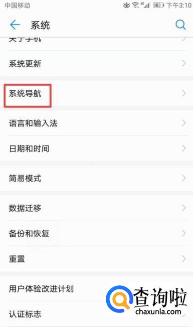 弹出的界面,我们点击系统导航;