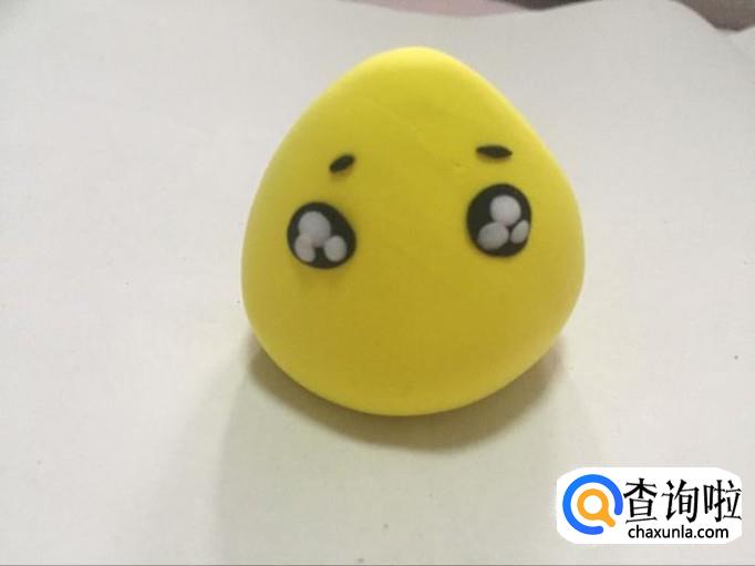 搓圆做眼里高光,捏三角做嘴巴如图。