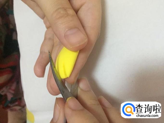 安全剪刀剪出鸡冠,用剪刀刀刃压出鸡翅膀如图。