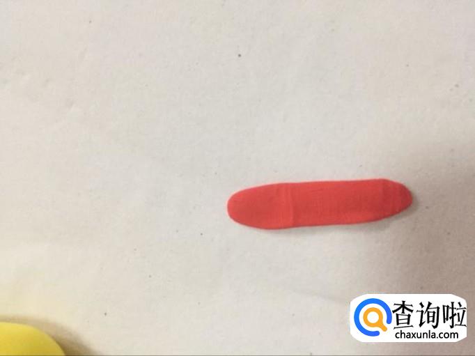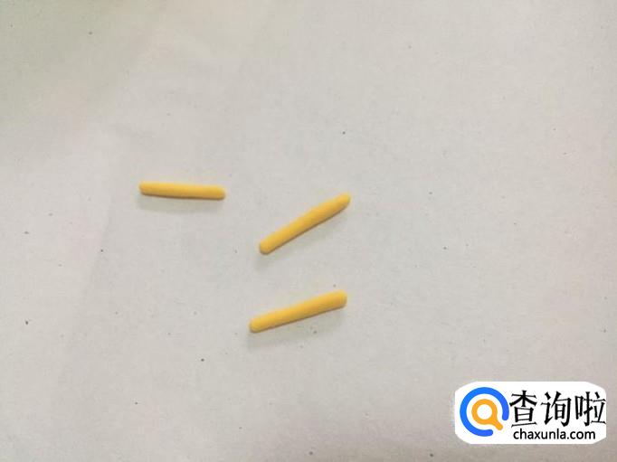 搓条三个一组,做好脚丫,搓条做腮红如图。