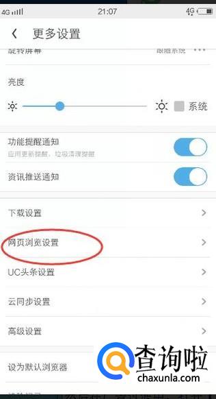 然后点击【网页浏览设置】,如下图所示:
