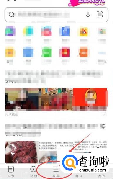 打开浏览器,然后点击下方的【菜单】,如下图所示: