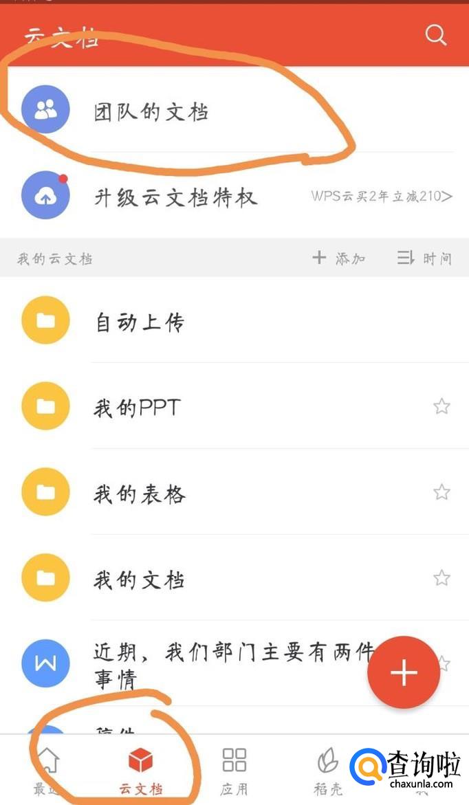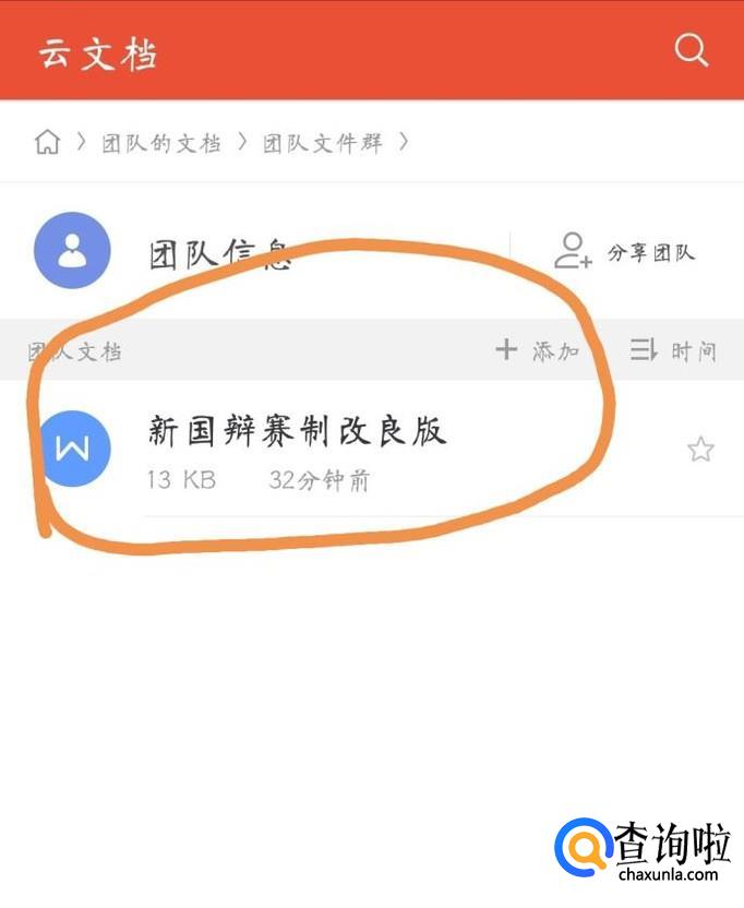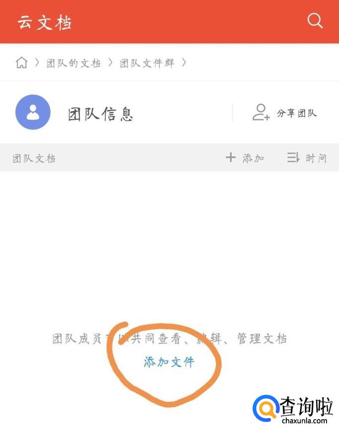 然后点击“云存档”界面的“团队文件”选项,进入界面