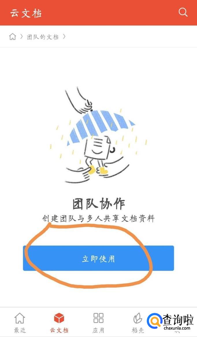 在团队文件的界面点击立即使用
