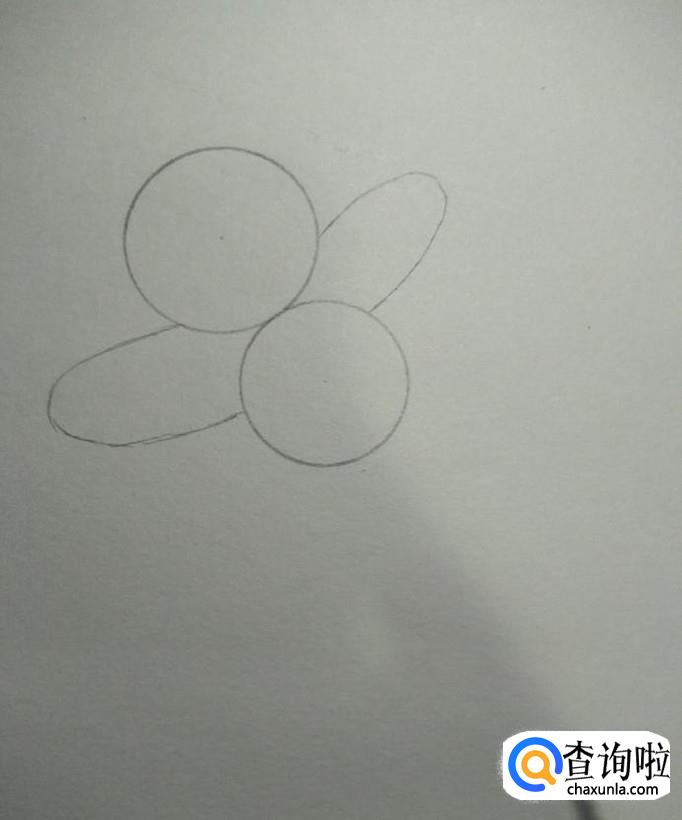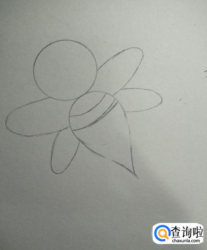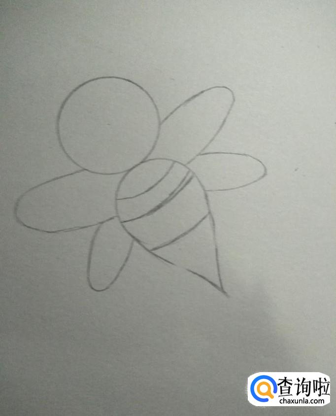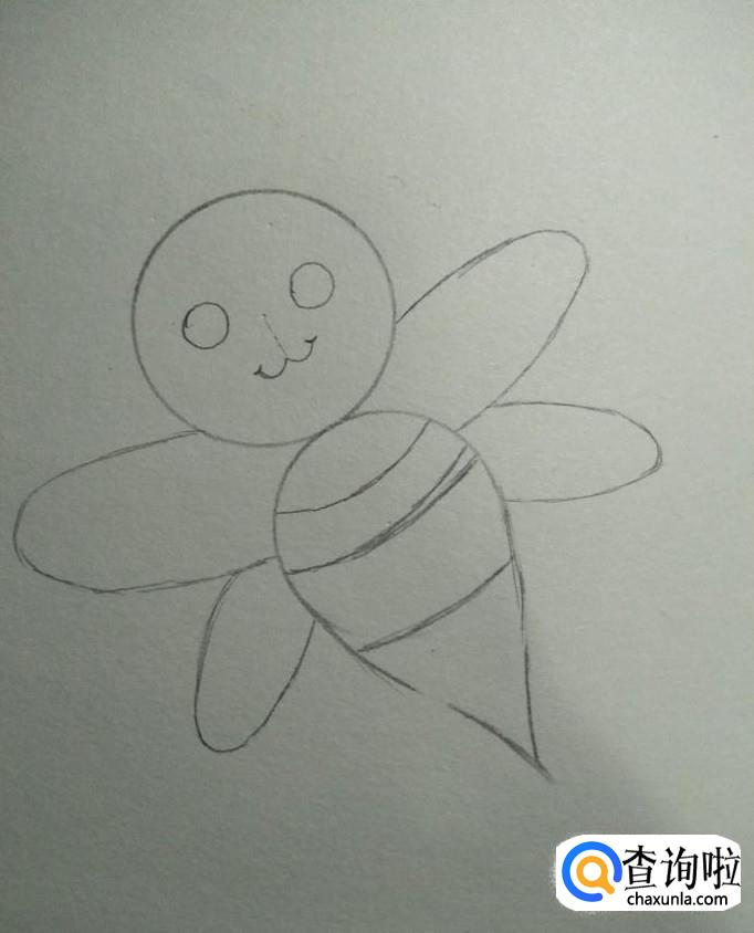 在蜜蜂的身体上段1/3处画两条弧线,如下图所示