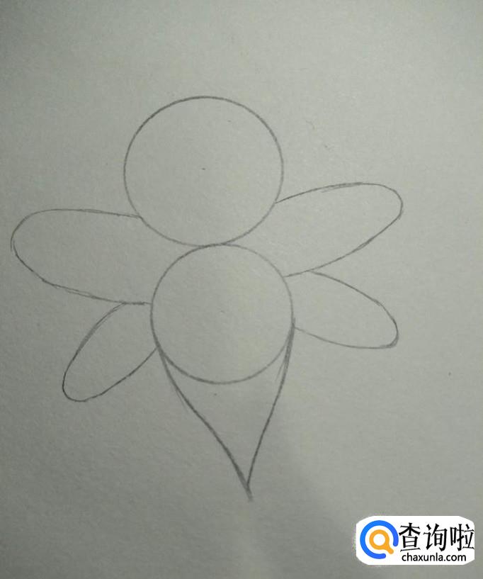 我们顺着小圆与小翅膀的末端将蜜蜂的尾部画出来,如下图所示,末端画的尖一些。