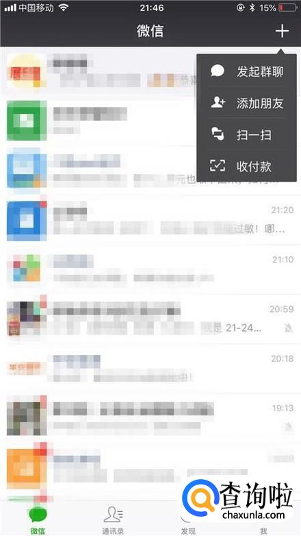 首先点击微信中的添加朋友,如下图所示