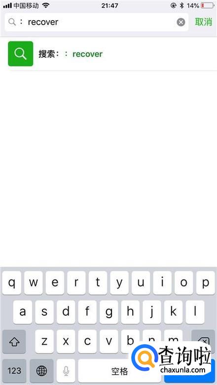 然后输入:recover并点击屏幕右下方的搜索,如下图所示。