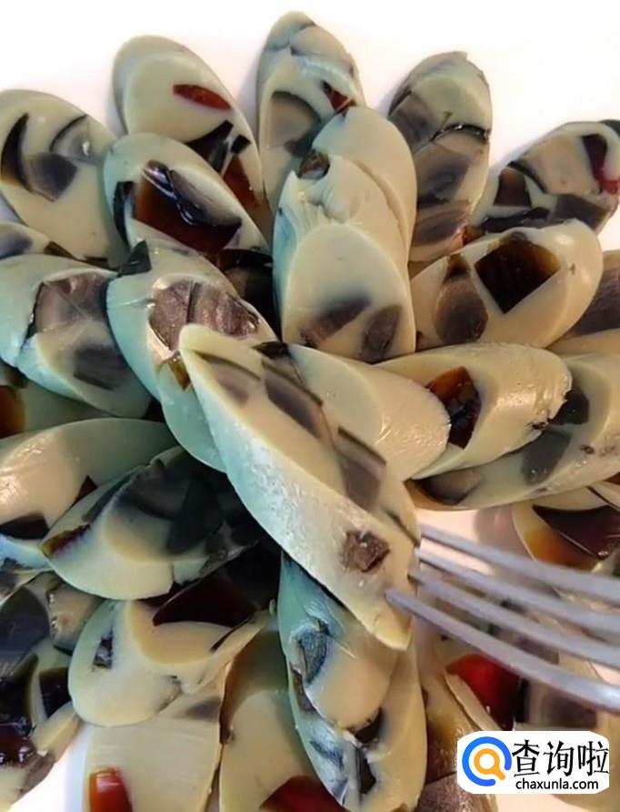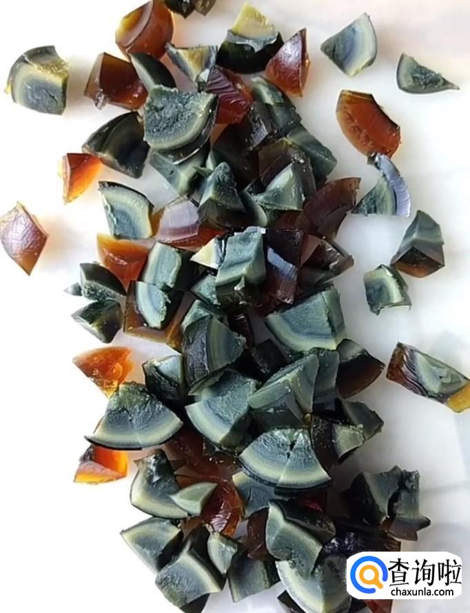 然后我们把皮蛋切成小丁,放入鸡蛋液中,搅拌均匀