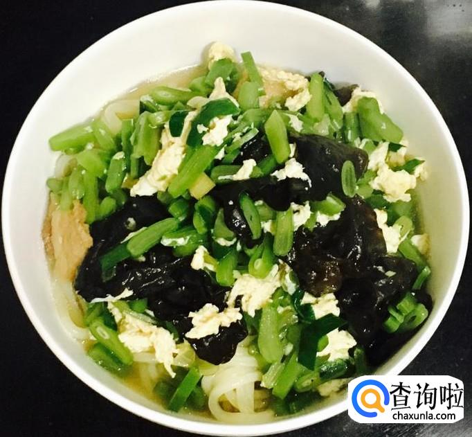 湿面条,豆角,水发木耳,五花肉,鸡蛋,葱,韭菜,花生油,生抽,料酒,蚝油,盐,水等等