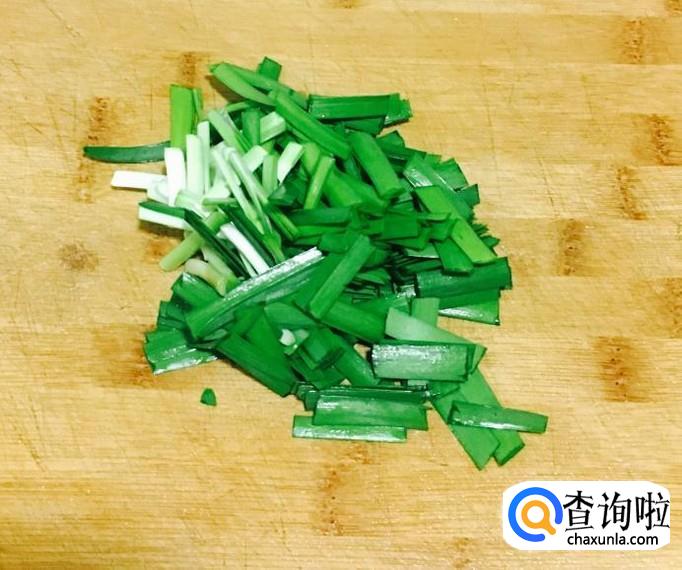 大葱、韭菜择洗干净分别切成葱花、韭菜段,五花肉一块用温水冲洗干净切成厚薄均匀的五花肉片