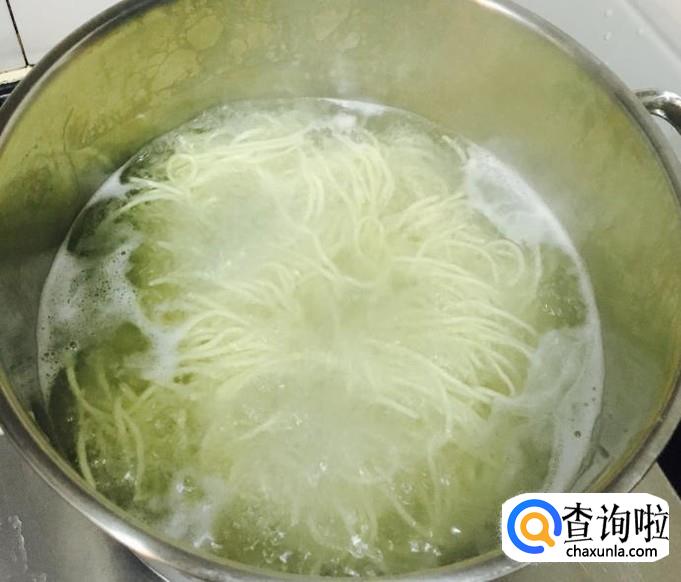 锅中加水煮沸后下入面条立即用筷子搅散防止面条粘连,煮至适合自己的软硬程度即可