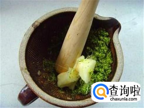 一边捣一边加上一把生姜,然后一起捣碎。
