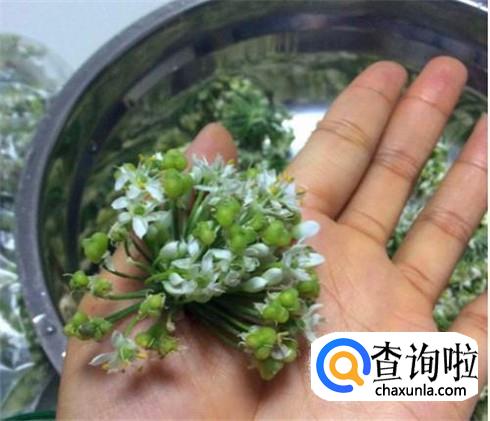 韭菜开花之后掐下来,只要那一团团的韭菜花,买来的韭菜花会有一些老梗的,把老梗除掉不要,清洗干净,控干水分,加上食盐腌制一下。