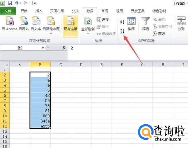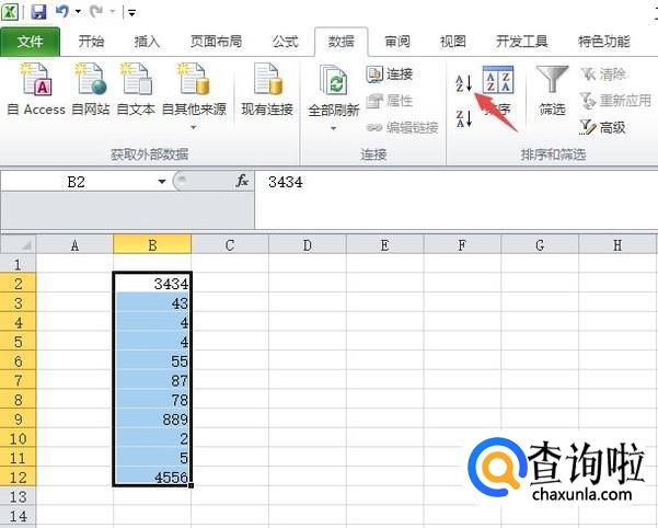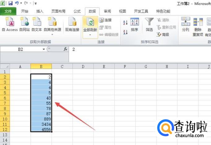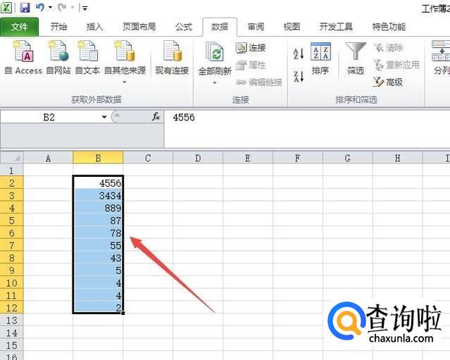 然后我们选中这些数字,我们打算对这组数字进行排序;