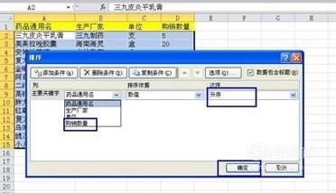 出现一个排序设置窗口,选择要排序的列,如“销售数量”以及排序的“次序”,再按确定。